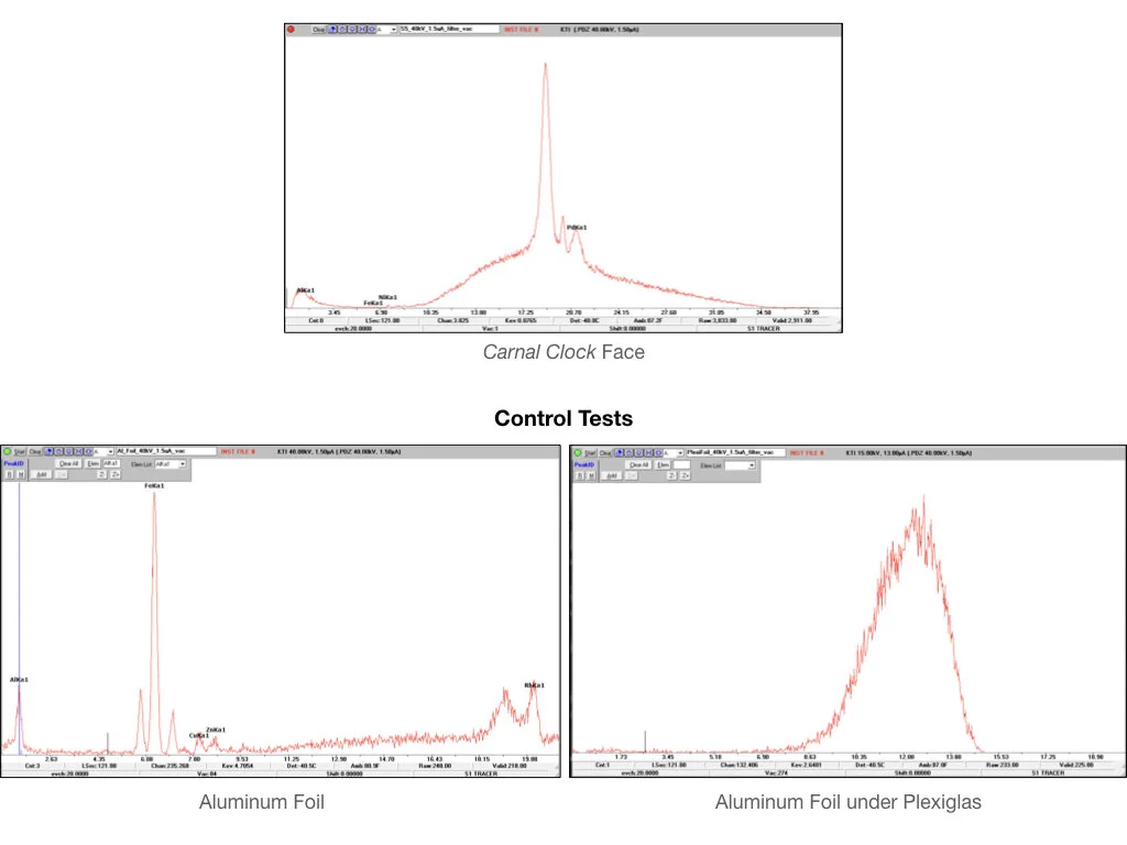 X-ray fluorescence (XRF) spectra to identify mirroring material in Carnal Clock face